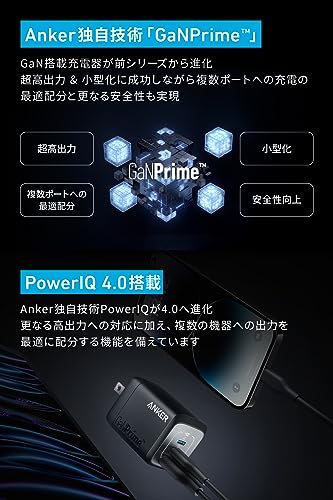 Anker Prime Wall Charger (67W, 3 ports, GaN) (ブラック)【 PD対応/PSE技術基準適合/折りたたみ式プラグ】iPhone 17 / 17 Pro / 17 Pro Max 他 iPhone シリーズ MacBook Windows PC iPad Galaxy Android スマートフォン ノートPC 各種 その他機器対応