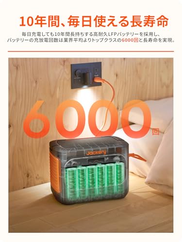 Jackery (ジャクリ) ポータブル電源 1000 New 1070Wh 業界トップの軽さとコンパクトボディ 1時間満充電 リン酸鉄 10年長寿命 定格出力1500W 瞬間最大3000W 防災 家庭用 アウトドア用 車中泊 UPS機能 アプリ遠隔操作 純正弦波 AC100V 50Hz/60Hz対応
